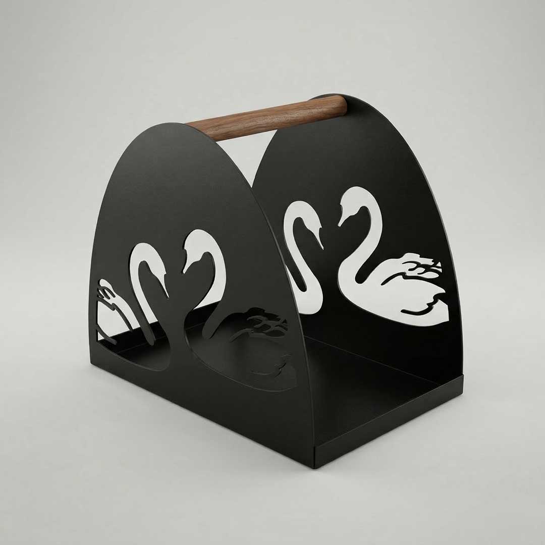 - Символичный дизайн. Силуэты лебедей, традиционных символов верности и чистоты, нанесены методом прецизионной лазерной резки. В свете каминного огня или садовых фонарей дровница создает удивительную игру теней, оживляя пространство вокруг очага.