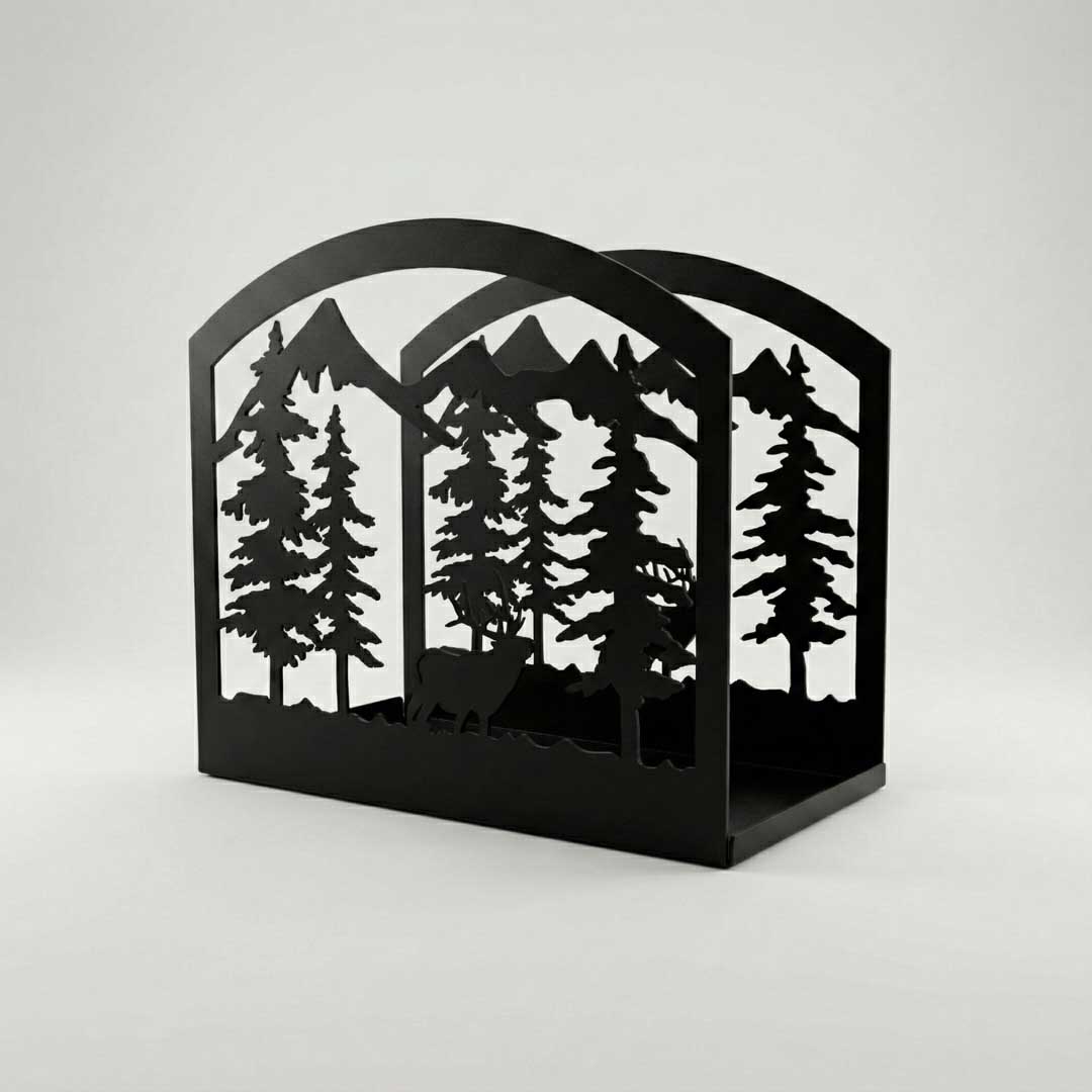 - Живой стальной рельеф. С помощью прецизионной лазерной резки на стенках дровницы воссозданы изящные силуэты деревьев и лесного ландшафта. Когда вы заполняете её дровами, рисунок оживает, создавая иллюзию густой чащи прямо в вашей гостиной или на террасе.