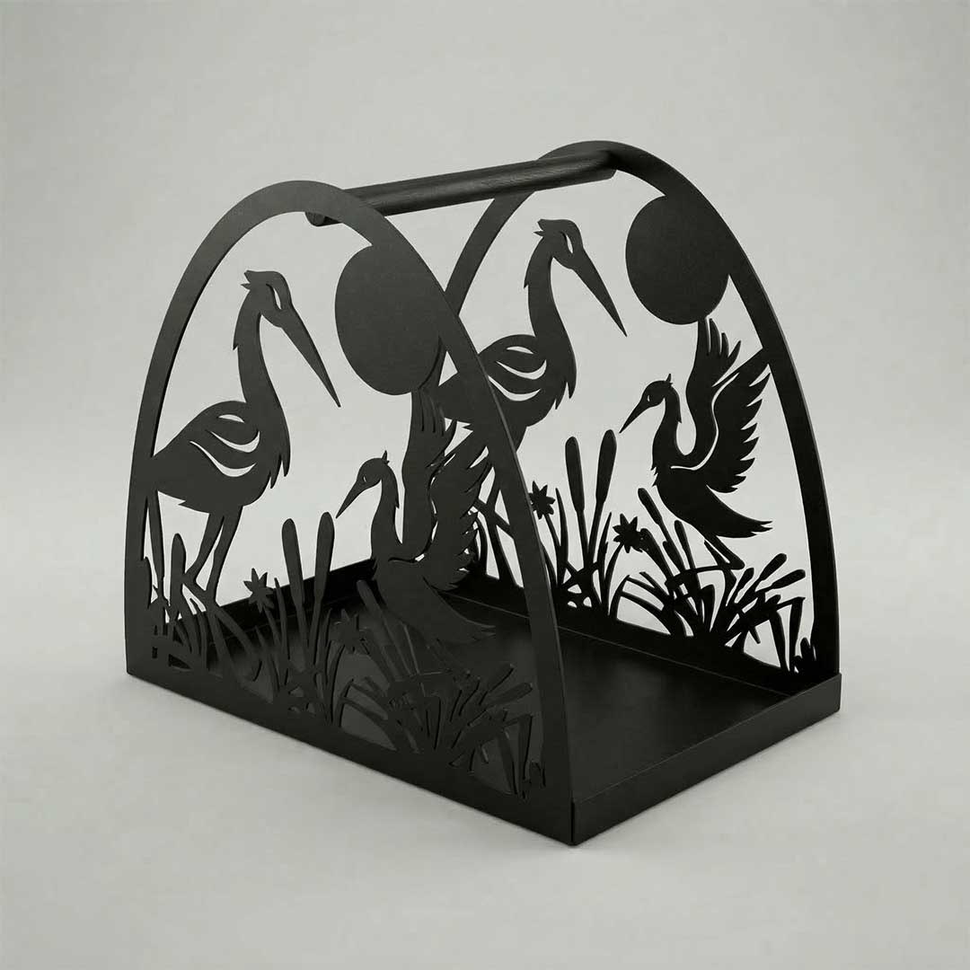 В этой модели мы объединили эстетику летящих птиц и функциональность переносной корзины для дров. Конструкция продумана так, чтобы облегчить ваш быт и украсить интерьер: