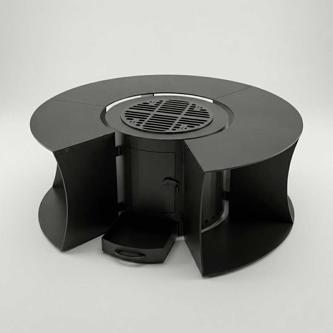 - Круговой доступ 360°. Форма гриль-зоны позволяет гостям равномерно располагаться вокруг огня. Каждый участник вечера может наслаждаться теплом и процессом приготовления, что превращает обычный ужин в захватывающее кулинарное шоу.