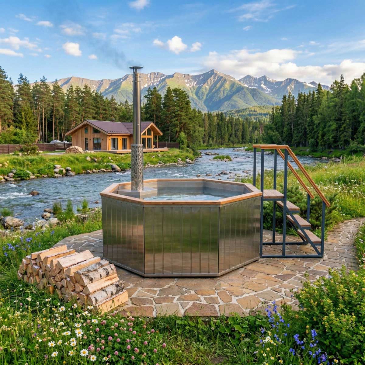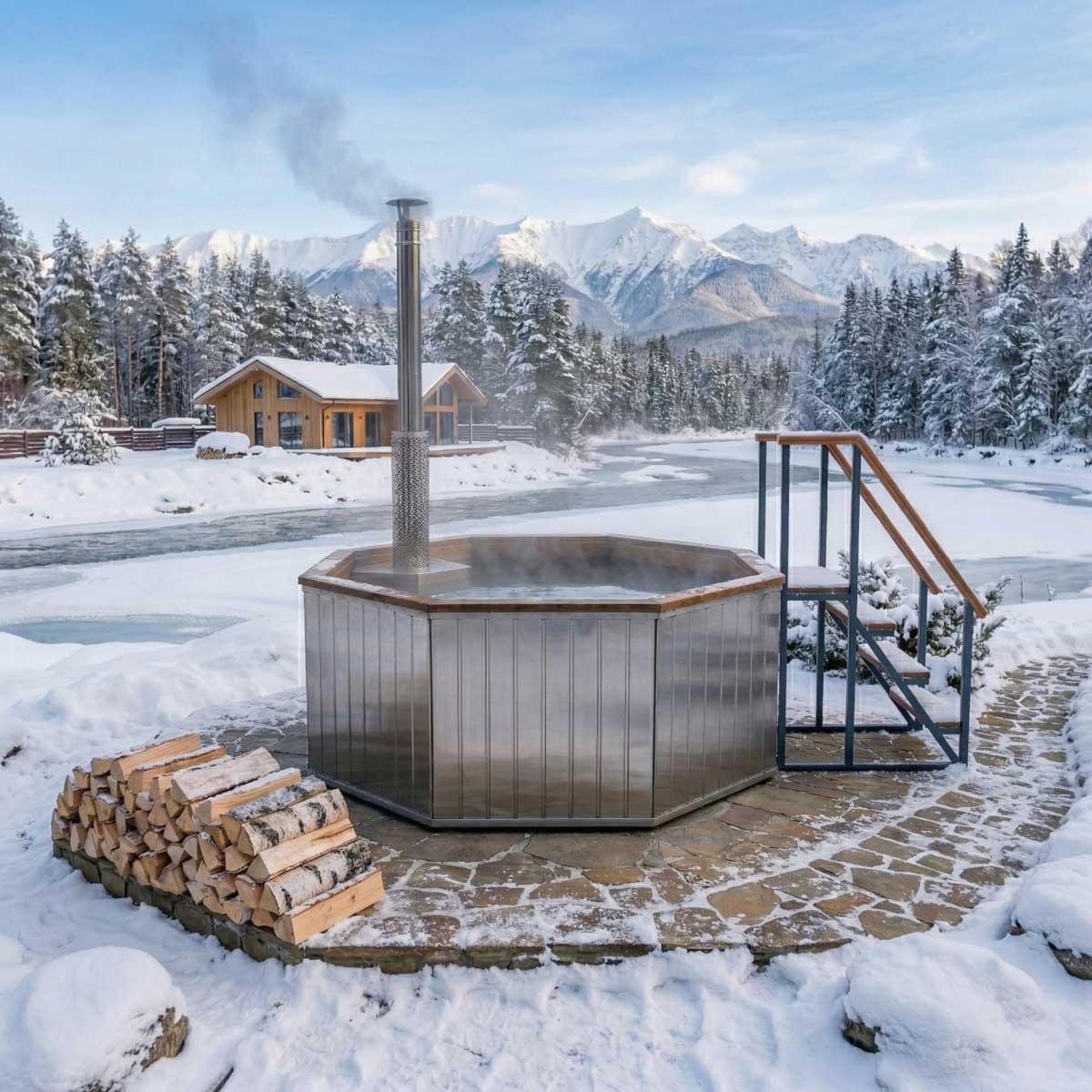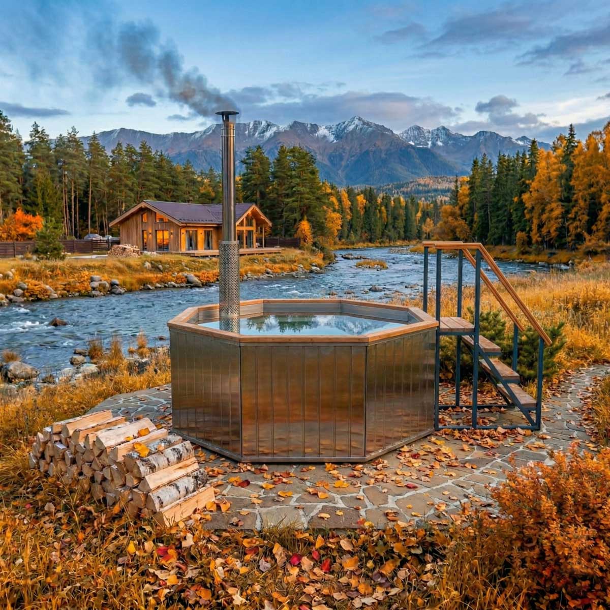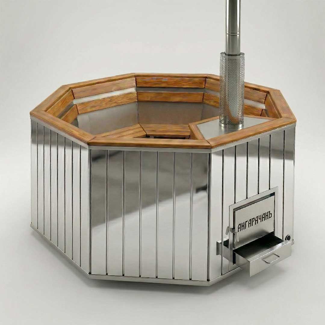 Если вы ищете по-настоящему бескомпромиссное качество для отдыха в большой компании, эта модель от производства Ангарачанъ станет идеальным выбором. Просторная японская купель Фурако с габаритами 2200х2000 мм выполнена из премиальной пищевой нержавейки марки AISI 304. Практичная наружная обшивка из металла и максимальная защита чаши от коррозии делают эту баню практически вечной.