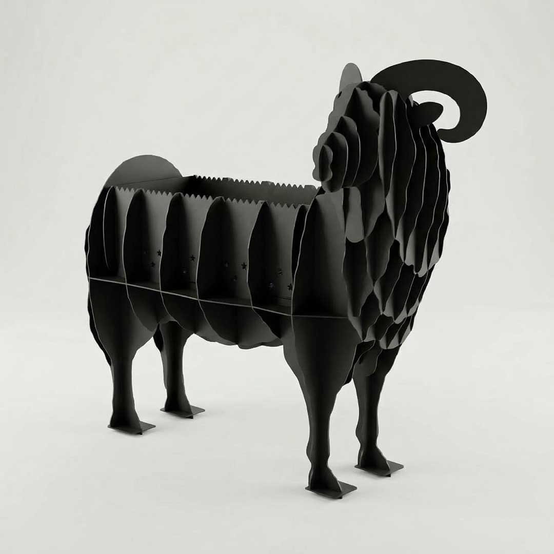- Эксклюзивный дизайн. Силуэт барана с мощными закрученными рогами выполнен методом прецизионной лазерной резки. Мангал выглядит как дорогая садовая скульптура, которая гармонично вписывается в любой ландшафт — от классического сада до стиля лофт.