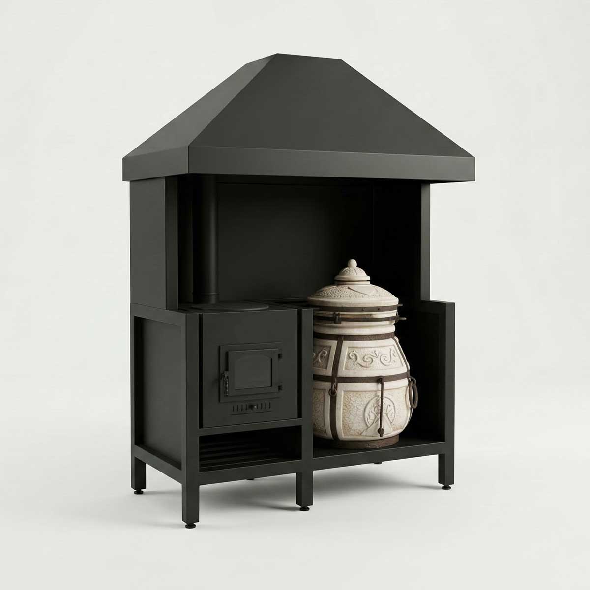 - Специализированная база. Усиленная площадка обеспечивает идеально ровную и безопасную установку керамики. Обращаем ваше внимание, что тандыр не входит в стоимость комплекса и докупается отдельно, давая вам возможность подобрать печь нужного дизайна и литража.