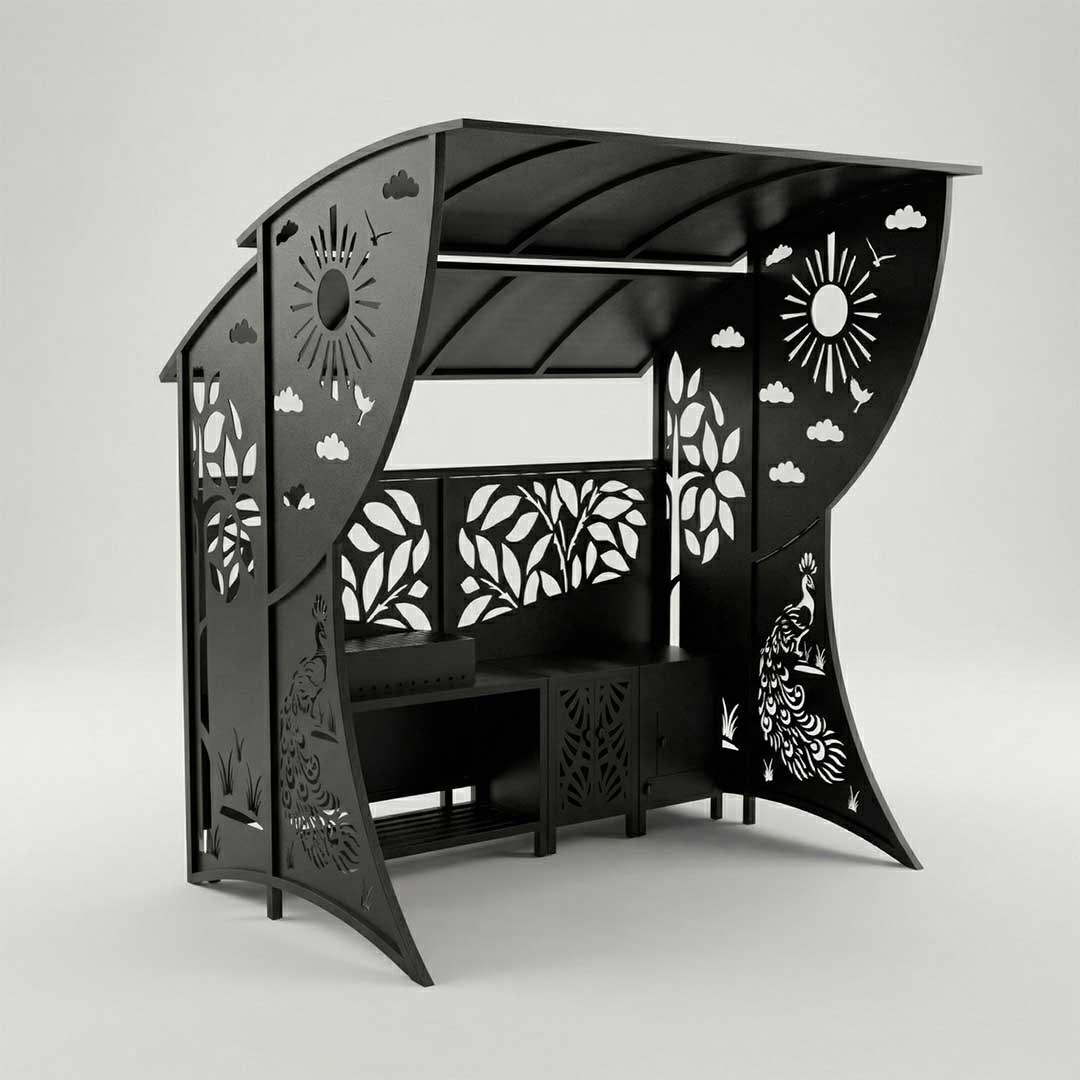 - Магия света и тени. Уникальная перфорация корпуса отбрасывает на террасу сложные кружевные тени. Это создает вокруг зоны барбекю интимную и торжественную атмосферу, превращая обычный ужин в праздничный ритуал.